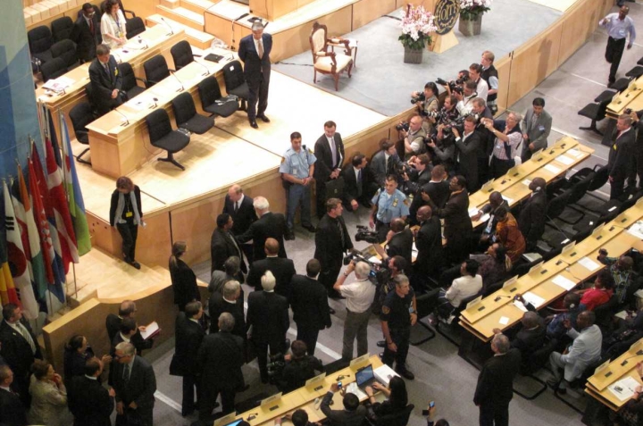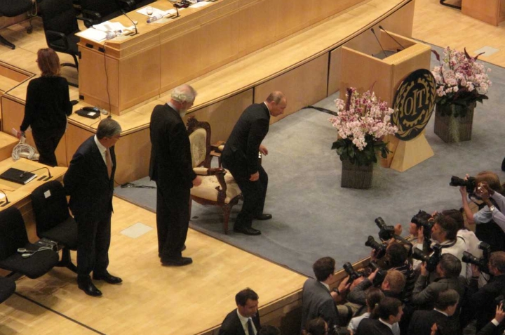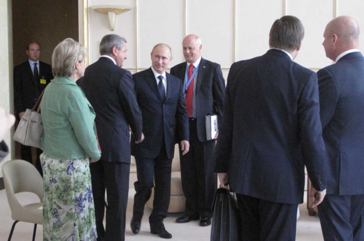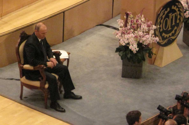 15 июня премьер-министр Российской Федерации Владимир Путин побывал в Женеве. Он выступил на 100-ой сессии Международной Организации Труда, а затем провел ряд двусторонних встреч: с генеральным директором Европейского Отделения ООН в Женеве К.-Ж .Токаевым, генеральным директором МОТ Х. Сомавия, исполнительным секретарем Европейской Экономической Комиссии ООН Я. Кубишем, верховным комиссаром ООН по делам беженцев А. Гутерришем, генеральным директором Международного Союза Электросвязи Х. Туре, президентом Международного Олимпийского Комитета Ж. Рогге, и наконец, с президентом Швейцарии Мишлин Кальми-Ре.