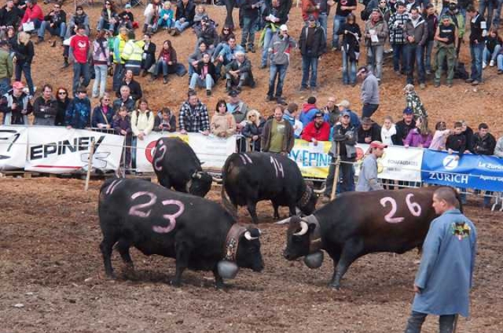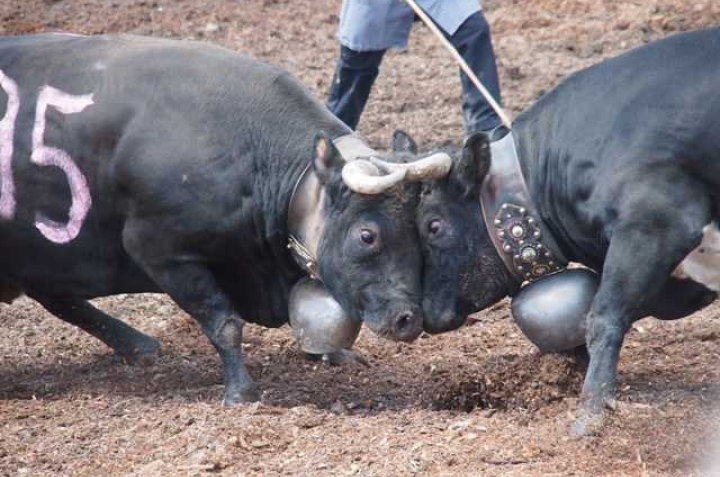 Мы уже писали про эту швейцарскую особенность, практически, национальный вид спорта, ничего не имеющий общего с корридой - коров никто не убивает: вдоволь пободавшись, они мирно расходятся. Но лучше один раз увидеть, чем сто раз услышать. И вот неделю назад мы отправились посмотреть на традиционные коровьи бои, проходившие в местечке Моллен кантона Вале при поддержке компании ALRV, одного из спонсоров Нашей Газеты.ch. (Все фото - © Nasha Gazeta.ch)