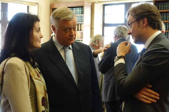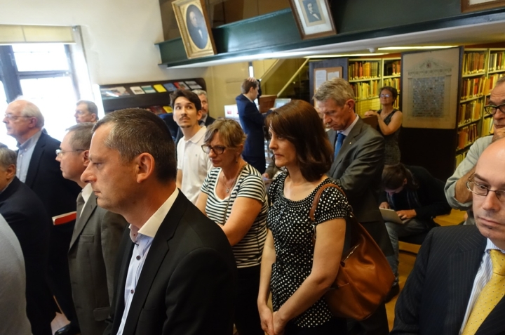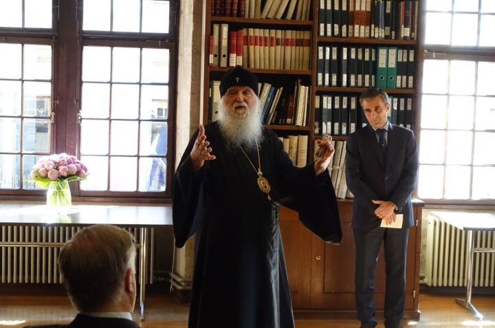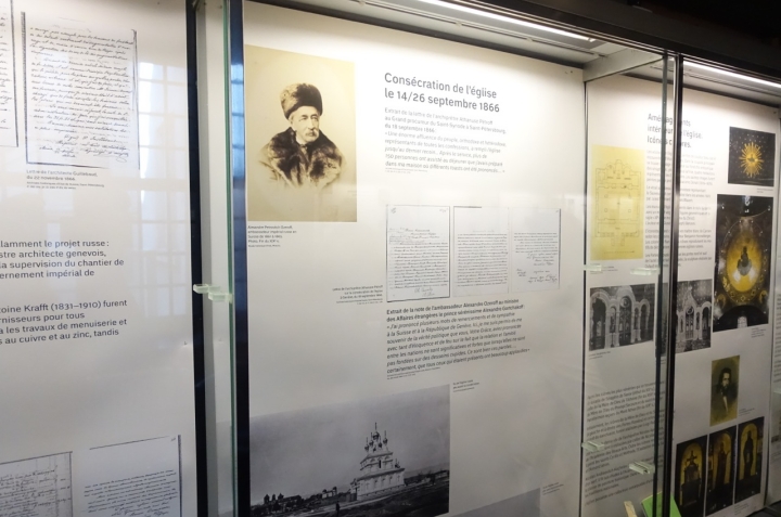 До февраля 2017 года в Государственном архиве Женевы, расположенном по адресу Hôtel de la Ville 1 (вверх по лесенке за знаменитыми пушками), проходит выставка, посвященная 150-летию Крестовоздвиженского храма. О том, как она готовилась и какие материалы на ней представлены, мы уже рассказывали, а сейчас предлагаем посмотреть несколько фотографий, сделанных на вернисаже 7 июня. В качестве принимающей стороны выступили государственный архивист Женевы Пьер Флюкигер и президент Государственного совета Женевы Франсуа Лонгшан. Господин Лонгшан, долгое время продержав в руках заготовленный текст, выступив все же без бумажки, подчеркнув историческую роль Женевы как место пересечения культур и религий. Он напомнил что именно здесь был построен не только первый русский православный храм, но и синагога, да и самая большая в Швейцарии мечеть расположены в городе Кальвина. Заметив, что сам он агностик, политик напомнил утверждение Льва Толстого о том, что Бог - русский, верность которого проверить не взялся.