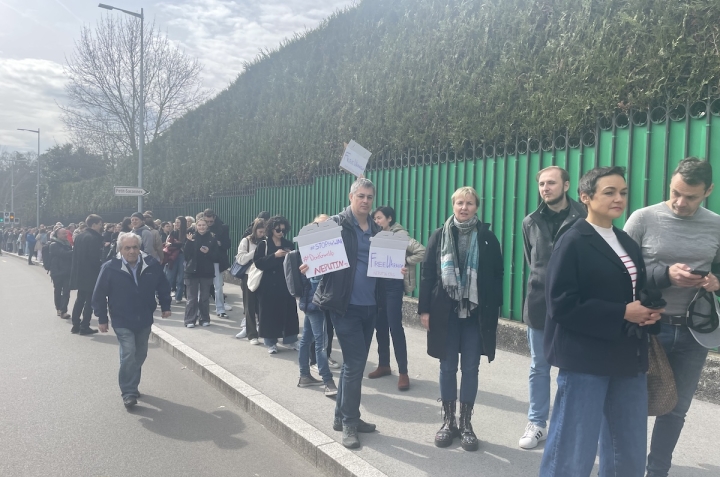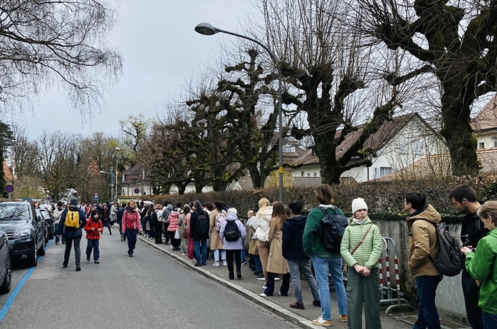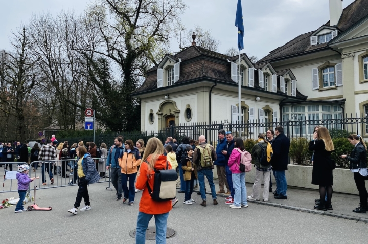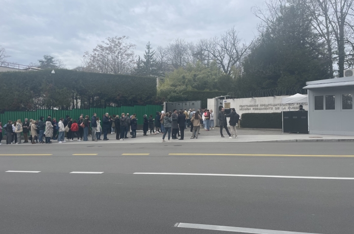В воскресенье 17 марта российские граждане, проживающие или временно находящиеся в Швейцарии, имели возможность принять участие в президентских выборах. Около полудня у избирательных участков в Женеве и Берне выстроились многометровые очереди. Все фото – Nashagazeta.ch