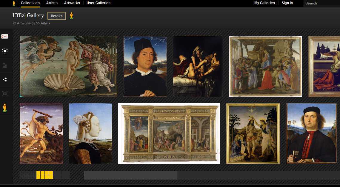 Каждый пользователь может создать свою собственную виртуальную картинную галерею, выбрав понравившиеся ему шедевры. Изначально произведения искусства распределены по музеям или по авторам, но можно вести поиск и по ключевым словам. Задав, например, «подсолнухи», «Венера», «дозор», перед вами откроется список работ, в названии которых встречаются искомые слова.