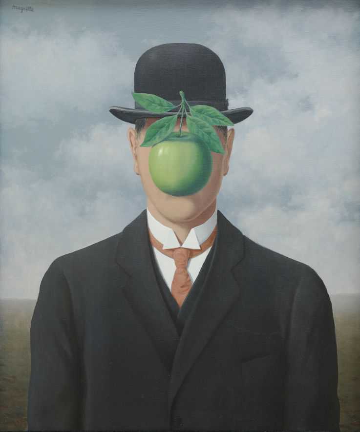 Сюрреалистическая вселенная Магритта соткана из вполне привычных предметов, возникающих в неожиданных сочетаниях и конфигурациях: человек с яблоком вместо лица, поезд, вылетающий из камина, растения, превращающиеся в птиц, дождь из силуэтов человечков… Странное сочетание провоцирует визуальный шок, заставляет зрителя невольно вглядываться в изображение, открывать в нем магические грани реальности. «Тот, кто ищет символических значений, не постигает поэзию и тайну образа», - писал Магритт, творчество которого превосходно иллюстрирует эстетический принцип «случайной встречи» двух несовместимых предметов, заимствованный основоположниками сюрреализма у французского романтика Лотреамона.