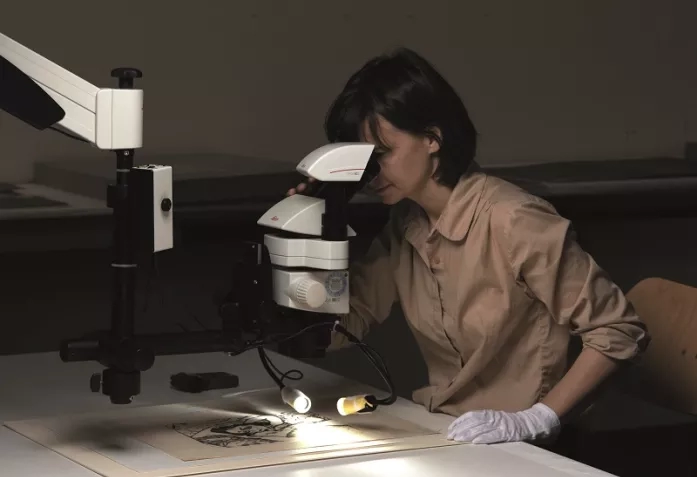 Реставратор Доротеа Шпица изучает рисунок в микроскоп © Kunstmuseum Bern