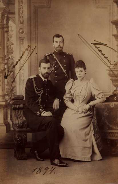 Великая княгяня Ксения Александровна с мужем великими князем Александром Михайловичем и братом, Николаем Вторым, 1894 г. (© Hotel des Ventes)