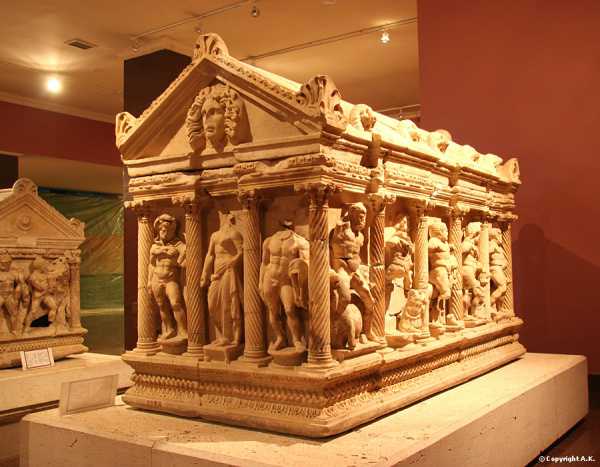 Копия саркофага с изображением двенадцати подвигов Геракла хранится в Анталийском археологическом музее (insecula.com)