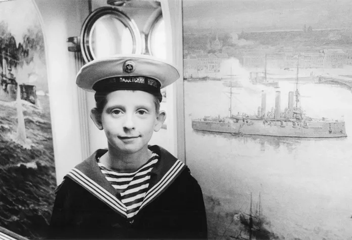 Выставку открывает портрет 11-летнего Сережи Камынина (заглавное фото к статье) – это одна из самых известных работ Дамманна, за которую он получил второй приз в конкурсе World Press Photo Award в 1998 году. Улыбающийся мальчик на фото – кадет Кронштадтского морского кадетского военного корпуса, основанного в 1995 году по распоряжению Анатолия Собчака. В отличие от «элитного» Нахимовского училища, где учились дети офицеров, в Кадетский корпус принимали сирот и детей из неполных семей, для которых это была возможность получить образование, одежду и регулярное питание.