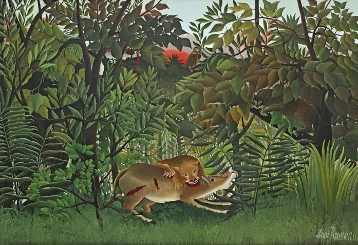 Анри Руссо. "Голодный лев набрасывается на антилопу", 1898-1905 гг. Fondation Beyeler, Riehen / Bâle, Collection Beyeler Photo : Robert Bayer, Bâle