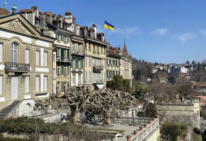 Украинский флаг над бернской мэрией. Фото: Nashagazeta.ch