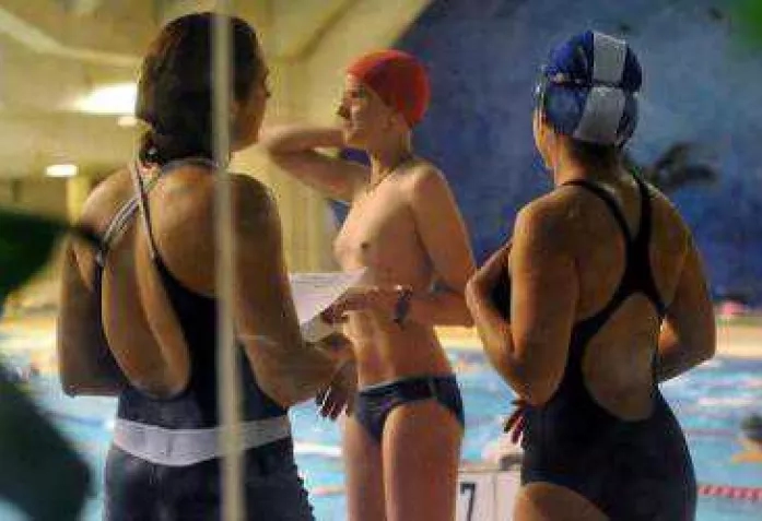 А еще активистки женского движения в Париже выступили за право купаться в бассейне как и мужчины, с открытой грудью (© AFP)