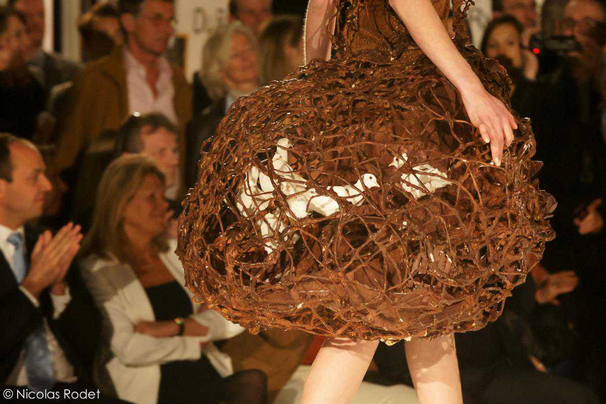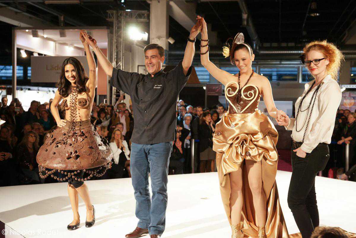 «Например, шоколадное платье в стиле барокко создали женевцы Филипп Пасое и Жлиза Суэ. А творение француза Жана-Клода Женсона и Мистера Кроше напоминает птичье гнездо, из которого вылетают настоящие голубки, - с гордостью прокоммертировала Сильви Дус. - Платья очень хрупки. Часто они страдают при транспортировке. Мы стараемся сделать все, чтобы восстановить их, но одно платье, к сожалению, пришлось исключить из дефиле, несмотря на старания всех изготовителей шоколада, которые помогали нам с его починкой. Это настоящая драма, потому что на создание его было потрачено 200 часов работы». В течение всех трех дней салона, с пятницы по воскресенье, каждый час проходили шоко-демонстрации – шоу, во время которых шоколад изготавливался «вживую». Посетители могли любоваться процессом с одного из 140 сидячих мест. Всего на салоне побывало порядка 10 тысяч маленьких и взрослых гостей. В программу вошли конференции, ателье для детей и встречи с мастерами шоколадного дела.