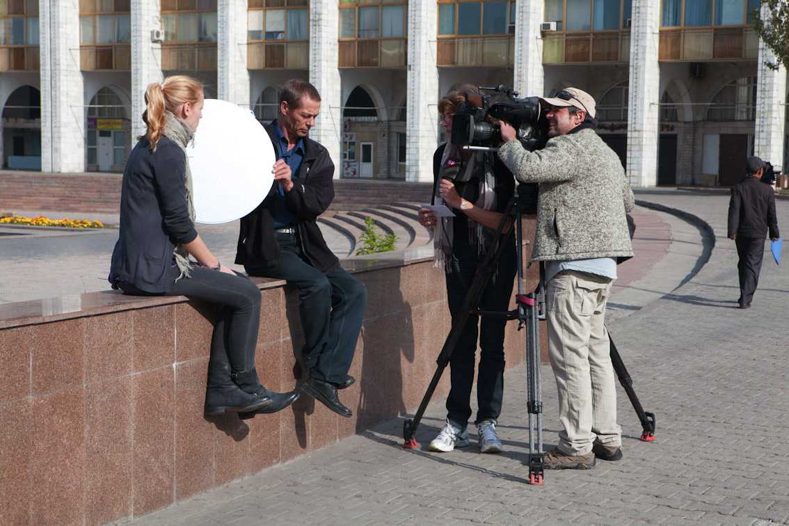 Хелен (сзади) со съемочной группой в Бишкеке (фото из архива Хелен Штели Пфистер)