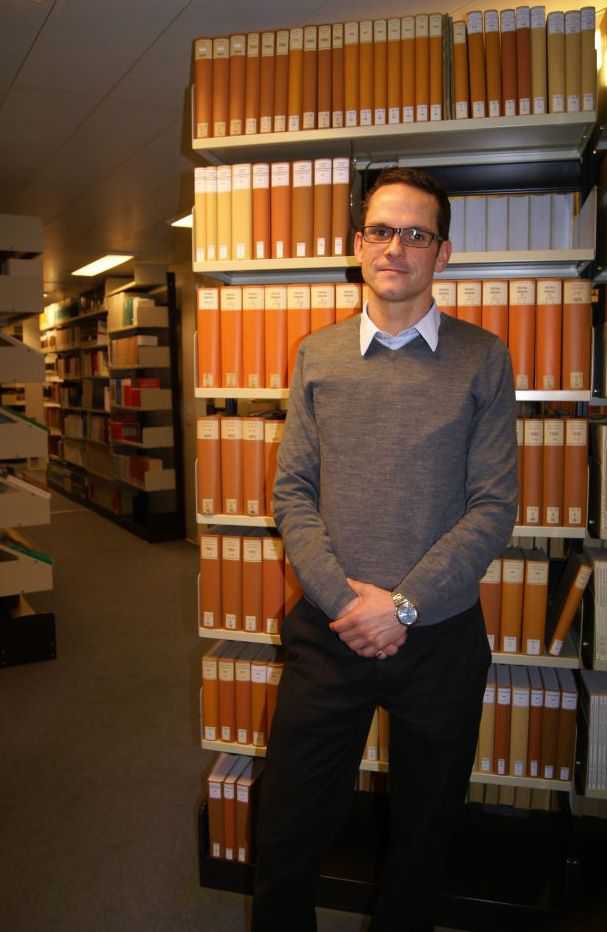 Профессор Йенс Херльт в библиотеке кафедры славистики Фрибургского университета (NashaGazeta.ch)