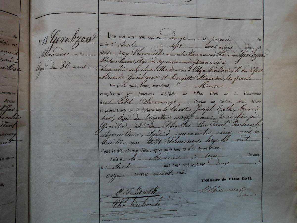 Герой войны с турками в 1828 году, отставной полковник Иркутского гусарского полка Александр Михайлович Жеребцов, обосновался в Женеве в середине XIX века. Он происходил из старинного знатного рода. В русскую историю вошла жена его дяди Александра Алексеевича — Ольга Александровна Жеребцова, урожденная графиня Зубова, знаменитая санкт-петербургская красавица рубежа XVIII—XIX веков и при этом один из вдохновителей заговора против Императора Павла Петровича…