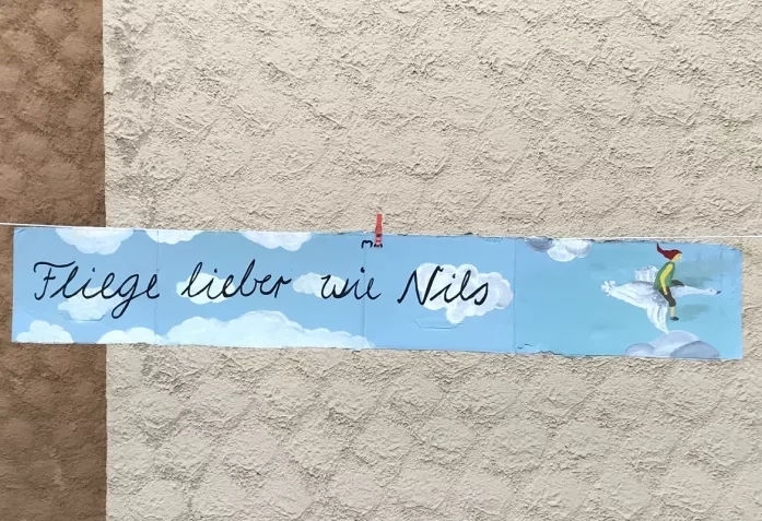 «Лучше летай, как Нильс» - этот и другие транспаранты с лозунгами экоактивистов на днях были развешены во дворе одной из бернских церквей в рамках акции в защиту климата. Фото: NashaGazeta