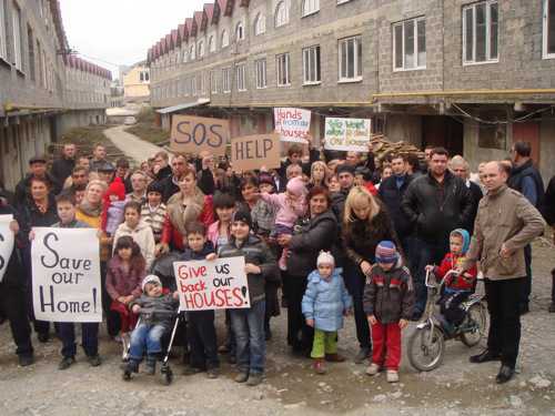 Радость новоселов была недолгой. Зимой 2011 года одна из жительниц поселка не смогла расплатиться по кредиту за дом и была вызвана банком в суд, где с удивлением для себя узнала от судьи, что земля, на которой стоит поселок, больше не принадлежит застройщику, а все постройки на данной территории признаны «самовольно возведенными». Эту информацию нам подтвердили в Департаменте Краснодарского края по реализации полномочий при подготовке зимних Олимпийских игр 2014 года. В 2007 году решением суда застройщик был лишен прав на эту землю, так как была доказана его вина в мошенничестве в особо крупных размерах. Согласно приговору от 26 октября 2011 года застройщику была избрана мера наказания - лишение свободы сроком на 4 года. Однако это не решает проблему: у владельцев коттеджей нет правообладательных документов на землю и признанных действительными разрешений на строительство. В связи с этим вынесено решение о сносе незаконных построек. Обманутые дольщики безуспешно пытались обжаловать это решение в судебном порядке. Согласно экспертному заключению, которое Светлана держит в руках, общая стоимость всех наземных строений составляет около 310 млн. рублей. Уже объявлен тендер на снос построек; предварительная стоимость работ - 80 млн. рублей. Строительство олимпийского объекта на этой территории составит около 800 млн. рублей. Каждый из перечисленных фактов Светлана Набокова и Виссарион Церахти подтверждают копиями документов, которые они предоставили в Международный олимпийский комитет.