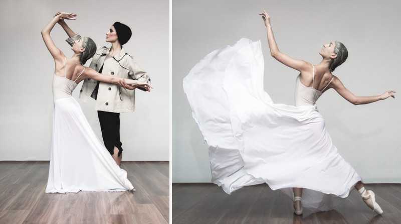 Наиболее интересным творческим проектом стала съемка танцовщиц балета Бежара. Еще британской модельер Стивен МакКуин заставлял свои модели танцевать – но сложно найти тех, которые это действительно могут делать! В итоге у меня получилась серия «статуя в движении» - танцовщица балета Бежара в белом падающем складками платье, с белым гримом, оживший мрамор.