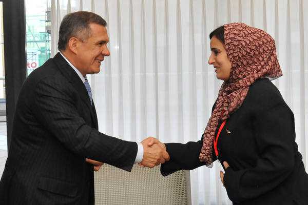 Рустам Минниханов: Из присутствующих здесь на форуме нас, в данный момент, привлекают страны Юго-Восточной Азии и государства арабского мира. На мой взгляд, мусульманские регионы России должны успешно работать с такими же странами. В Татарстане явно выраженный мусульманский фактор присутствия, с исламскими государствами у нас общая религия, хорошее понимание, и нужно это использовать. Здесь на форуме наша делегация встречается с управляющим директором Исламской корпорации по страхованию инвестиций и экспортных кредитов Исламского банка развития, министром внешней торговли Объединенных Арабских Эмиратов шейхой Любной бент Халид Аль Касими и министром национального планирования и экономики Коста-Рики Лаурой Альфаро Майкалл.