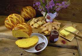 Chuchole, сдобная булочка с ароматом шафрана, подается со сладкой горчицей Бенишона и сливочным маслом (Fribourg Région)