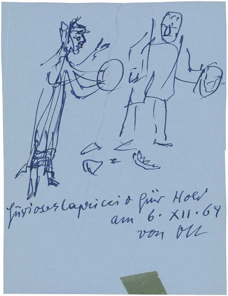 Рисунок Оскара Кокошки: "Ольда и Оскар бьют тарелки во время семейного спора", 1964 (© Fondation à la mémoire de Oskar Kokoschka, Musée Jenisch Vevey / 2011, ProLitteris, Zurich)