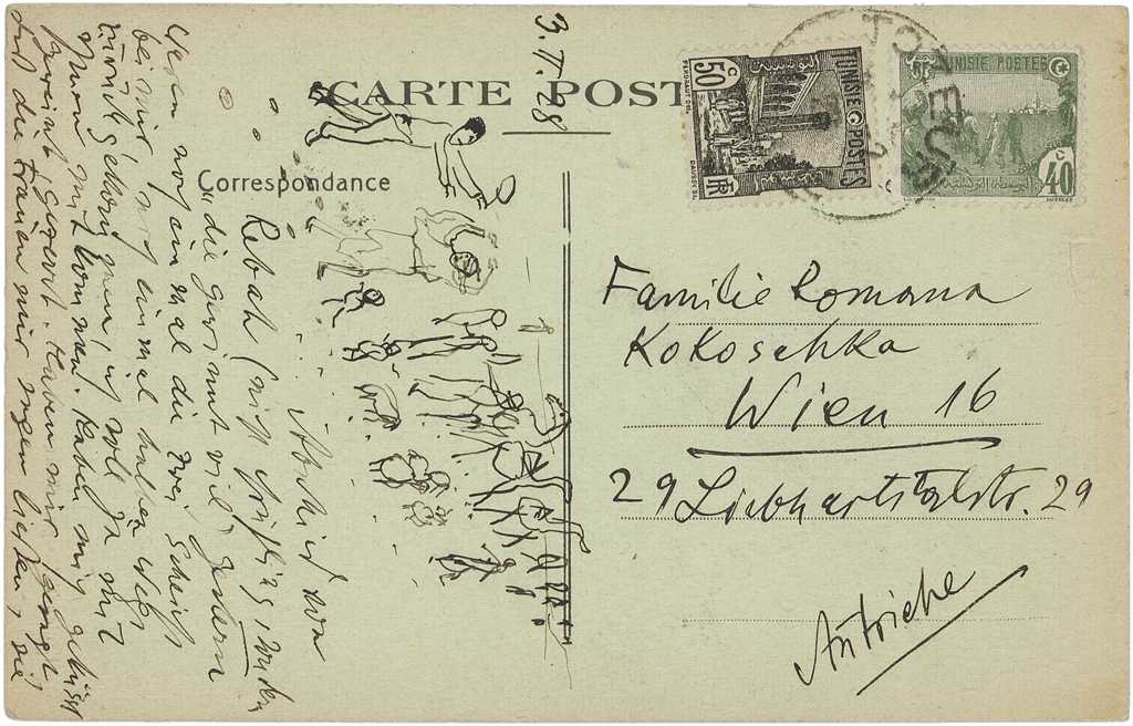 Набросок каравана, сделанный рукой Оскара Кокошки на открытке из Туниса, адресованной семье в Австрии. Таузар, 3 февраля 1928 (© Fondation Oskar Kokoschka, Musée Jenisch Vevey / 2010, ProLitteris, Zurich)