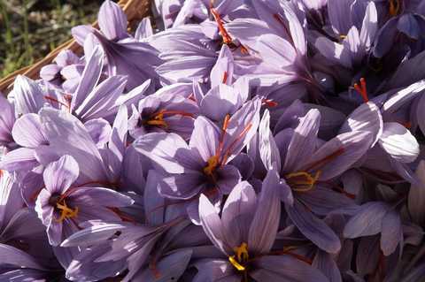 В каждом крокусе – всего 3 пестика, и для производства одного грамма шафрана нужно как минимум 180 цветков. Луковички крокуса высаживают в землю с середины августа до середины сентября, а расцветают в октябре и ноябре – еще одна удивительная особенность редкого цветка в том, что его «весна» наступает осенью. Сбор урожая происходит вручную, традиционным способом. Для сохранения высокого качества пряности, собирать цветки нужно за три дня, следующие за раскрытием. В тот же день рыльца пестиков аккуратно отделяют от цветка и оставляют сушиться в защищенном от солнца и влаги месте в течение 48 часов. Дело в том, что ниточки шафрана чувствительны к солнечному свету и мгновенно впитывают влагу. Затем полученные волокна выкладывают в герметические стеклянные банки  для хранения.