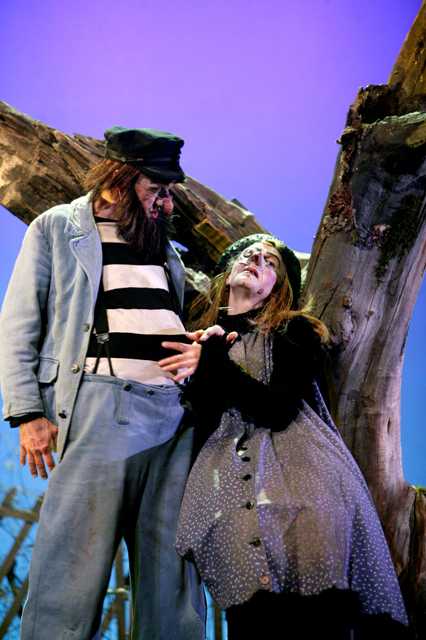 Но вернемся к спектаклю театра Am Stram Gram. Кому же он посвящен? Двум злыдням, живущим в хибаре где-то в лесу, держащим в клетке и мучающим обезьяну, смазывающим ветки деревьев универсальным клеем, чтобы заманить и съесть доверчивых птичек… Главное их занятие – придумывание каверз друг против друга, одна другой мерзопакостнее.