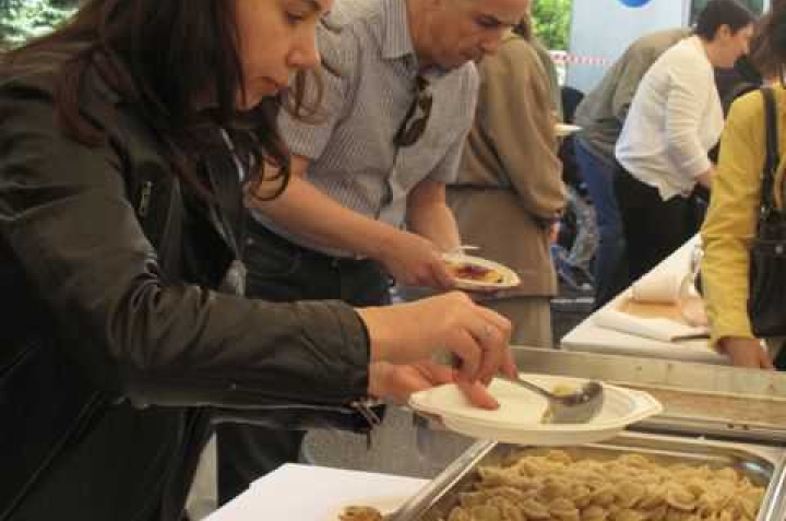 Русские блинчики с красной икрой, белорусские драники, армянская пахлава, казахстанские манты, туркменские сладости…  Где все это можно попробовать одновременно, в одном отдельном взятом месте, да еще в Женеве? Конечно, на традиционной маевке, которая прошла в субботу в Представительстве России при Европейском отделении ООН при активном участии представителей многих союзных республик. Красочные стенды со всевозможными яствами снова навели нас на мысль о необходимости создания в Женеве «Советского» ресторана – успех был бы гарантирован!