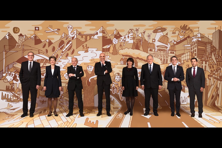 Официальное фото швейцарского правительства публикуется ежегодно и одобряется президентом. Работу над новым портретом министров Ален Берсе доверил своим землякам из Фрибурга: фотографу Штефану Шмутцу, более известному под псевдонимом Stemutz, и художнику Мишелю Коттэну, подписывающему свои работы именем Michel FR. Портрет доступен в двух вариантах: в виде обычного и анимированного изображения.