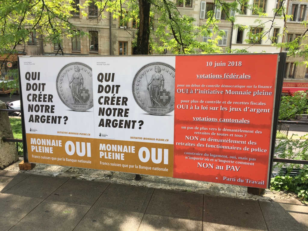 Инициативе «Monnaie pleine» (франц.: «Полные деньги») сказали «нет» 75,7% участников референдума. Запустила инициативу ассоциация Modernisation monétaire, или MoMo (франц.: «Денежная модернизация»), представляющая группу экономистов, финансистов и предпринимателей. Авторы хотели запретить частным банкам эмитировать деньги и возложить эту задачу исключительно на Национальный банк Швейцарии.