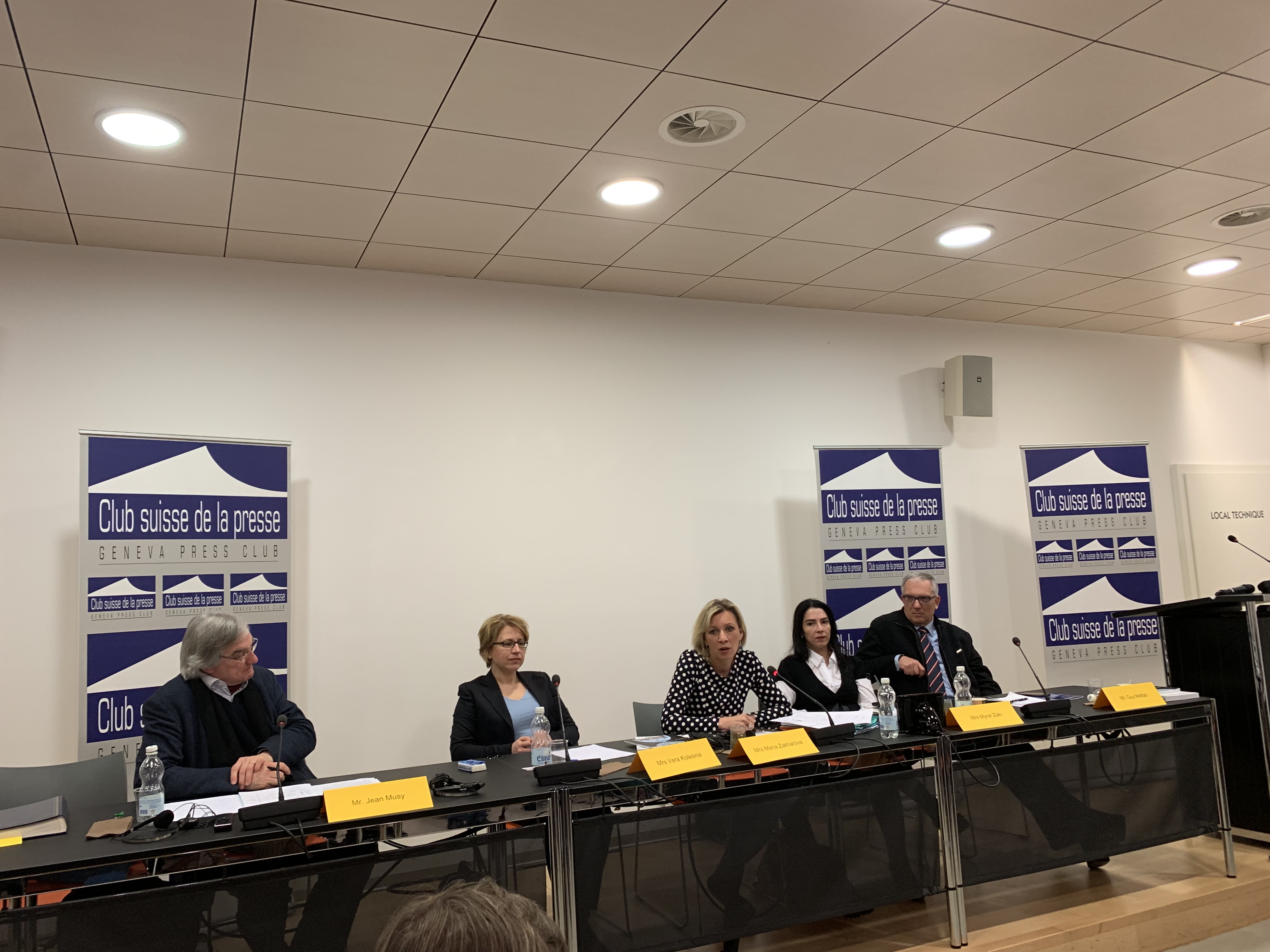 На нашей памяти дискуссия эта была особой и по продолжительности (2,5 часа), и по накалу страстей. И первое, и второе обстоятельство объясняется сложностью и важностью темы (уж нам ли не знать!) и составом участников, профессионализм каждого из которых мы по достоинству оценили. Признаемся, получив приглашение, мы удивились, увидев, что российскую сторону представляют спикер МИД России Мария Захарова и пресс-секретарь парижского бюро агентства «Спутник» Вера Колесина, а швейцарско-международную, так сказать, - главный редактор журнала Bilan Мирет Заки и президент Ассоциации иностранной прессы в Швейцарии и Лихтенштейне Жан Мюзи. Впрочем, «стороны» здесь понятие условное, и не надо сразу представлять себе баррикады, ведь все мы, в принципе, в одной лодке. Хотя речь шла о войне. Информационной.