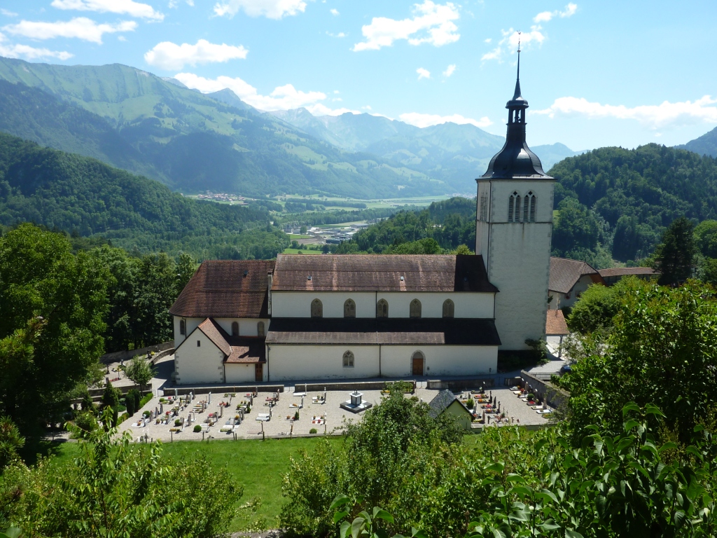 Как это обычно бывает в Швейцарии, церковь великолепно вписывается в окружающий идиллический пейзаж, иногда возле нее пасутся овечки и коровы, звенящие своими колокольчиками. Настроиться на торжественный и молитвенный лад помогает то, что храм расположен не в центре городка, а в стороне от шума и гомона туристов. Над церковью возвышается замок Грюйер, первые документальные упоминания о котором относятся к 1244 году, в его стенах посетителей ждет музей, готовый рассказать 800-летнюю историю своего региона.