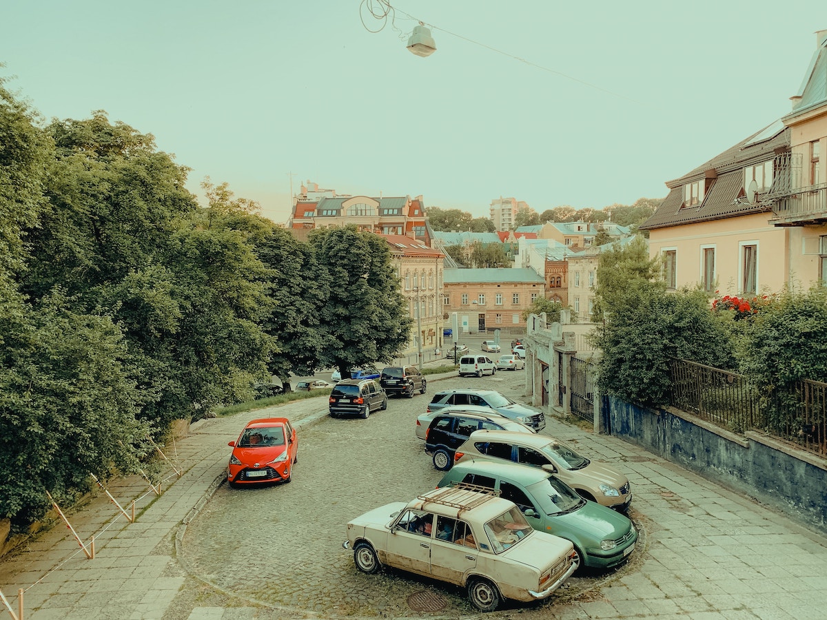 Автомобили, припаркованные в одном из дворов Львова. Фото: Jenia Flerman, Unsplash