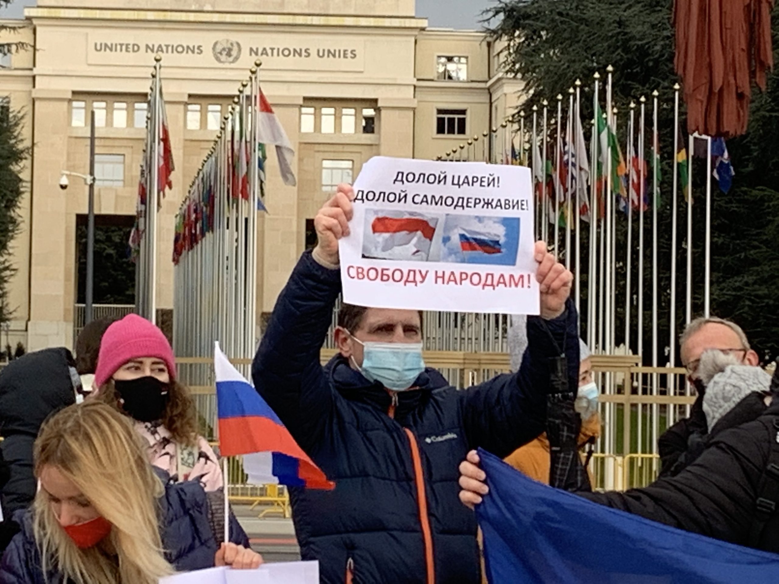 Fidèle à cette règle, je me suis abstenue d’écrire un seul mot dans mon journal à propos de l’opposant russe Alexeï Navalny – jusqu’au 23 janvier. C’est à cette date justement que des manifestations à son soutien se déroulèrent en Suisse. Ce jour-là je me suis rendue à la Place des Nations à Genève pour voir de mes propres yeux un groupe de gens agitant, devant la fameuse chaise, des pancartes, des drapeaux russes, ukrainiens. J’ai pris quelques photos et les ai postées – sans commentaire - sur la page Facebook de Nasha Gazeta. De toutes façons cela se serait avéré inutile : nous avons reçu un nombre record des commentaires tous azimuts de nos lecteurs reflétant le large spectre d’opinions allant de « bravo, les gars » au « quels clowns ». Chose exceptionnelle ! J’ai dû effacer deux ou trois commentaires et avertir certains autres lecteurs qui se sont laissé déborder par leurs émotions. Un baston physique dans l’espace virtuel soit, heureusement, impossible pour l’instant, mais – même virtuel et seulement verbal – il montre la profonde fissure dans la communauté russophone. Cette fissure n’est pas seulement entre ceux qui se trouvent « là-bas » (en Russie, en Ukraine, en Belarus ») et « ici », en Suisse, mais également entre ceux qui sont en Suisse tout court. Depuis ce 23 janvier les manifestations se déroulent en Suisse tous les weekends, la dernière a eu lieu à Zurich, samedi dernier. Peu de monde y participe mais elles se déroulent. Et je suis sûre que personne ne paie les manifestants, contrairement aux insinuations de certains.