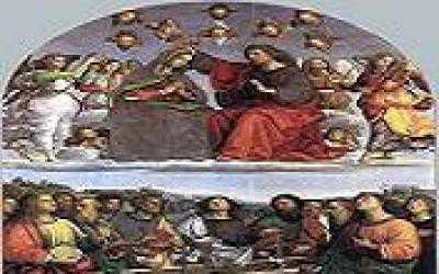 На иллюстрации: картина Рафаэля, изображающая свершившееся после Успения Вознесение и Коронование Девы Марии, - чисто католический догмат, который признается даже не всеми христианами. Ему посвящен выходной день 15 августа.