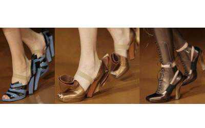 Я уверена, что оксфорды Dolce & Gabbana на толстом деревянном каблуке захочется надевать как можно чаще. Каблук-cтакан на этих туфлях чем-то напоминает внедорожник. Модель будто специально создана для брусчатки на женевской rue de Perron. Все так же популярны ботильоны, особенно лаковые. Совершенно прекрасное зрелище – загорелые ноги в ботильонах Givenchy c открытыми пальцами. В таких нужно отправляться на первое свидание. Золотые ботильоны Lanvin великолепно разобьют черные комплекты осени. В таких нужно отправляться на собеседование. Самая главная деталь - каблук. Он может быть или экстремально высоким (12 сантиметров) или экстремально декоративным. Изящный каблук на туфлях Prada напоминает крыло бабочки. Я пробегала в них весь день и ничуточки не устала, а затем еще и проcтояла весь вечер.