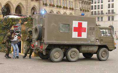 Город Сумы получил подарок от кантона Аргау: армейский санитарный грузовик.