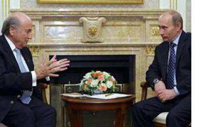 Номер 53 беседует с номером 3: Йозеф Блаттер и Владимир Путин на встрече в Москве, октябрь 2009 года (premier.gov.ru)