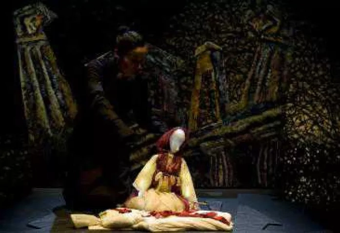 Знакомо настолько, что комментарии, я думаю, излишни. В кукольном спектакле роль хора исполняет семейство стервятников, что тоже символично. Но и тут все не просто. Дочь-стервятница не хочет клевать мертвого принца, отказывается выходить замуж за нелюбимого родственника, влюбляется в чужака-ворона и собирается улететь с ним в дальние края вить гнездышко. Замысел не удался – папа-стервятник (чуть не написала «стервец») силой вручает дочь выбранному им жениху. Вот вам еще одна трагедия.