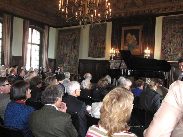 Фестивалю удалось договориться с владельцами расположившегося здесь частного музея, который можно определить, как музей швейцарского быта или интерьера, хоть и называться он просто Villa St. Charles. Они не только предоставили свое изысканное, словно созданное для камерных концертов помещение, но и установили на импровизированной сцене прекрасный Steinway, который находился ранее не где-то в кустах, а в цюрихском Tonhalle.