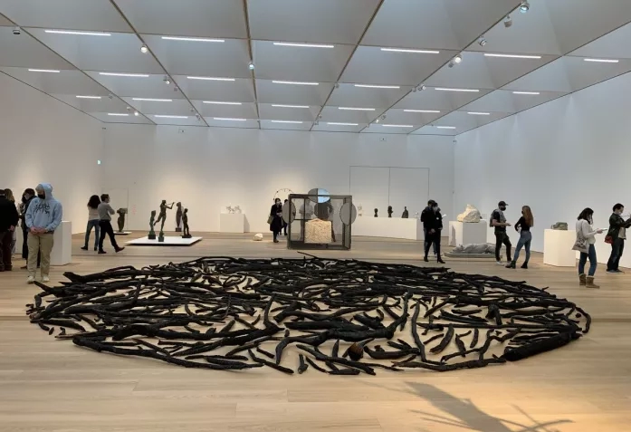 Выставка организована вокруг масштабной, диаметром 9 м, работы «Wood Fire Circle» («Круг из дерева для костра») одного из наиболее заметных представителей британского лэнд-арта Ричарда Лонга. Если развить метафору, то вокруг этого деревянного «солнца» расходятся восемь тематических «лучей», а проще говоря – секторов выставки: «Уловить движения», «Изваять чувство», «Классическая красота», «Расчлененные тела», «Задачи портрета», «Бестиарий», «Бывшие в употреблении материалы» и «Творить с природой».