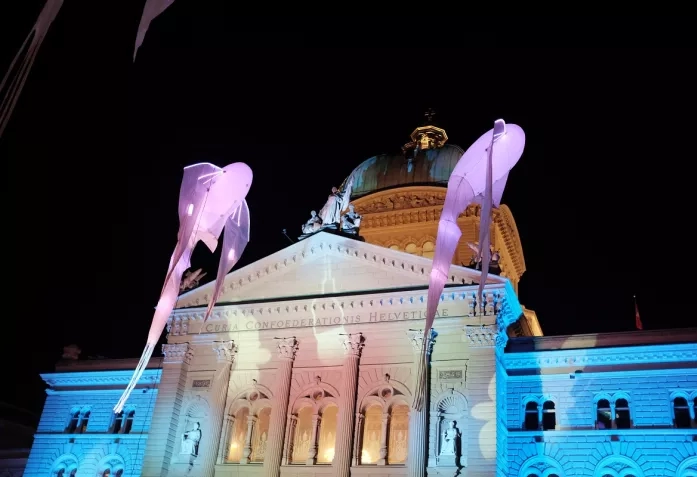 Вечер начнется в 18.00 на Бундесплац, где в небо запустят огромные бумажные светящиеся фигуры, похожие на китов. В двух шагах от Бундесплац, в пятизвездочном отеле Bellevue, будет представлена экспозиция, посвященная истории двух самых красивых замков Тунского озера – Оберхофена и Хюнегга.