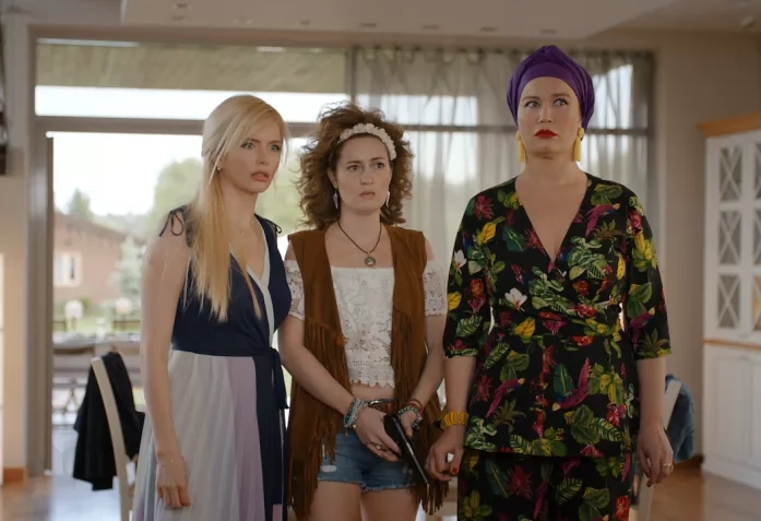 Вера, Надежда, Любовь – именно так, чтобы до зрителя сразу дошло главное, зовут трех героинь. (Странно, что мать Любы не назвали Софьей.) Яркая, ухоженная блондинка Вера – врач-кардиолог, уже два года крутит роман со швейцарцем Эриком и надеется вот-вот получить от него предложение руки и сердца несмотря на то, что камешек в кольце, обнаруженном ею в носке любимого, подруги находят слишком маленьким. Гренадерша Люба, для которой что швейцарец, что датчанин – один черт, – владелица клиники лечебного питания, без ума от своего тщедушного мужа Ильи, актера-неудачника, в котором она тщетно пытается разбудить льва с помощью «ласкательно-возбудительных» эпитетов: «какой ты у меня шустрый, какой верткий». Надя – без определенного рода занятий, с признаками истерии, но накануне свадьбы с Сашей, айтишником, с головой погруженным в проблемы блокчейна и мечтающего о том, как «нарожаем мы с тобой маленьких айтишников».