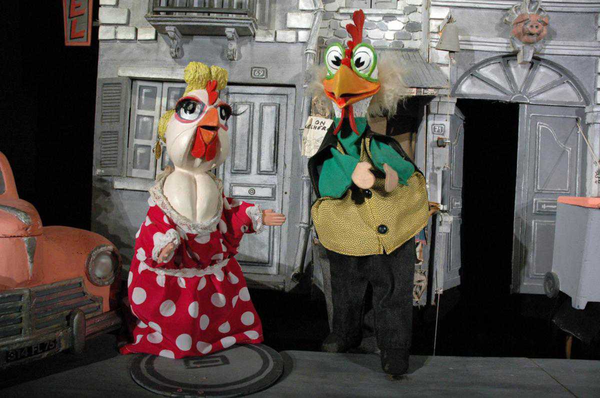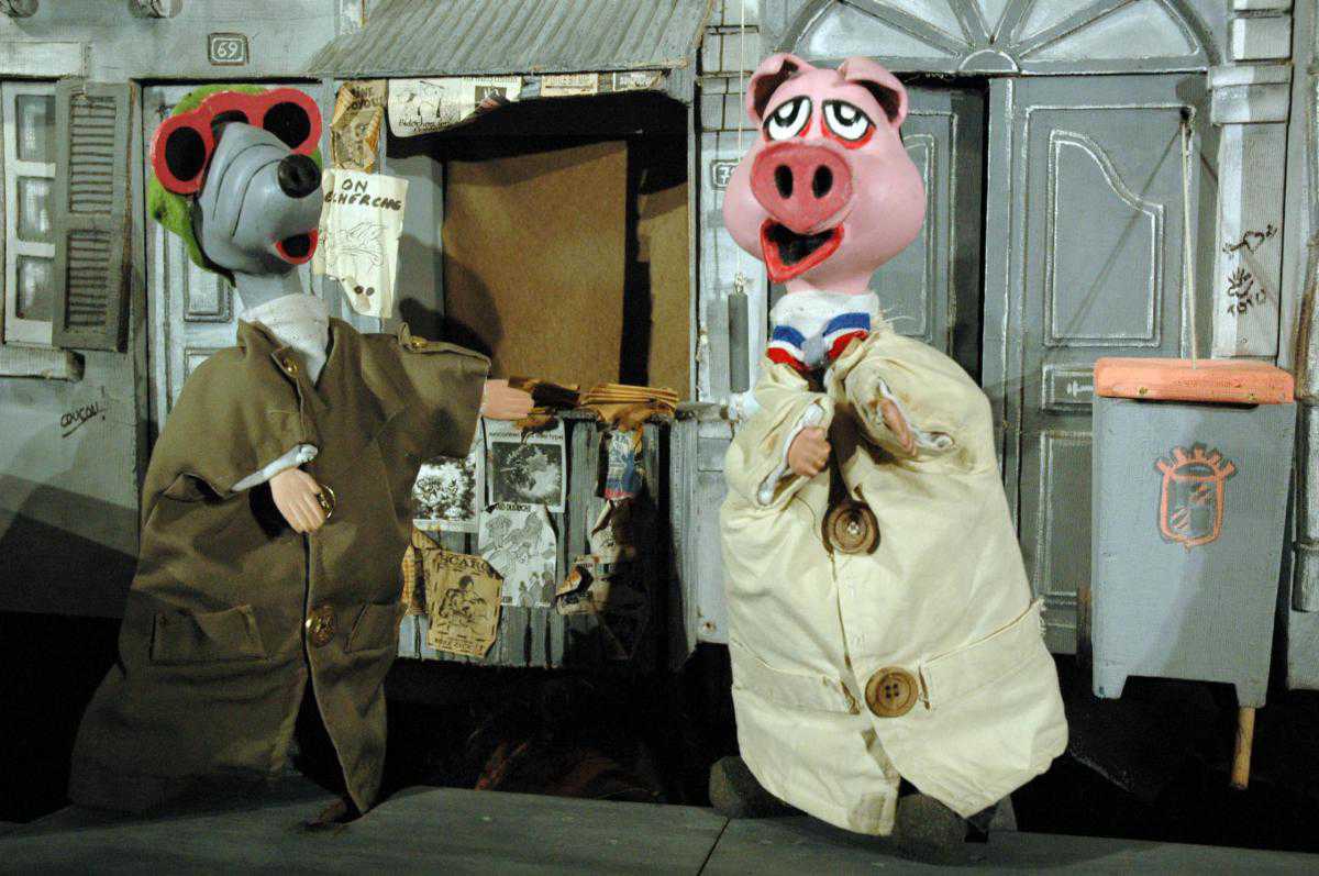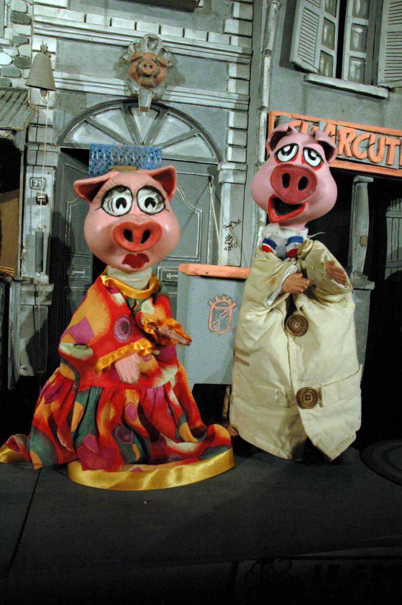 «Поросячий детектив» - это спектакль одного актера-кукольника, виртуозно управляющего десятью куклами, стилизованными под героев мультфильмов. Он мастерски меняет голос, переходя от глубокого бархатного баритона Жана Габена при озвучке детектива Мак Горета к режущему слух надтреснутому фальцету Петуха. Спектакль – симпатичная сатира на телесериалы, а потому в нем смешаны наиболее яркие черты многих из них, можно даже уловить намеки на триллеры Хичкока.