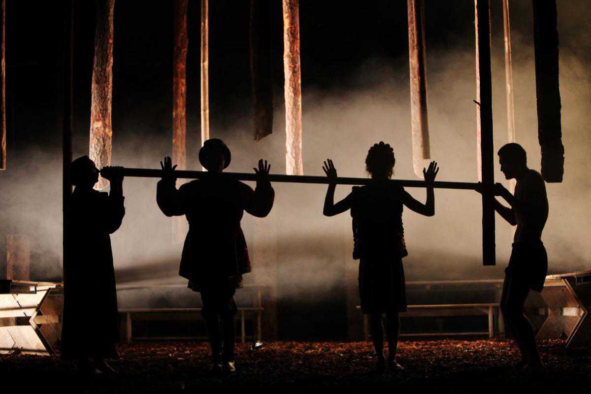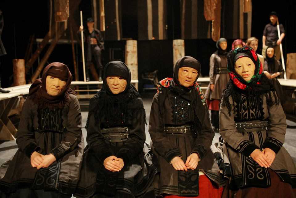 Единственное, почему порой становится обидно за Гоголя – это постоянные упоминания Шекспира. То история Хомы Брута, по мнению одного из франкоговорящих персонажей, «достойна трагедии Шекспира», то монолог героя в начале второго акта напоминает монолог Гамлета, а божество по имени Вий он называет «королем Лиром, сошедшим с ума». Частично эти аллюзии можно объяснить тем, что в репертуарном списке «даховцев» есть спектакль «Король Лир». Частично – желанием дать европейской публике привычную точку опоры. Но все равно хотелось сказать: «Взялись выкапывать Вия из-под украинской земли – так не отвлекайтесь!»