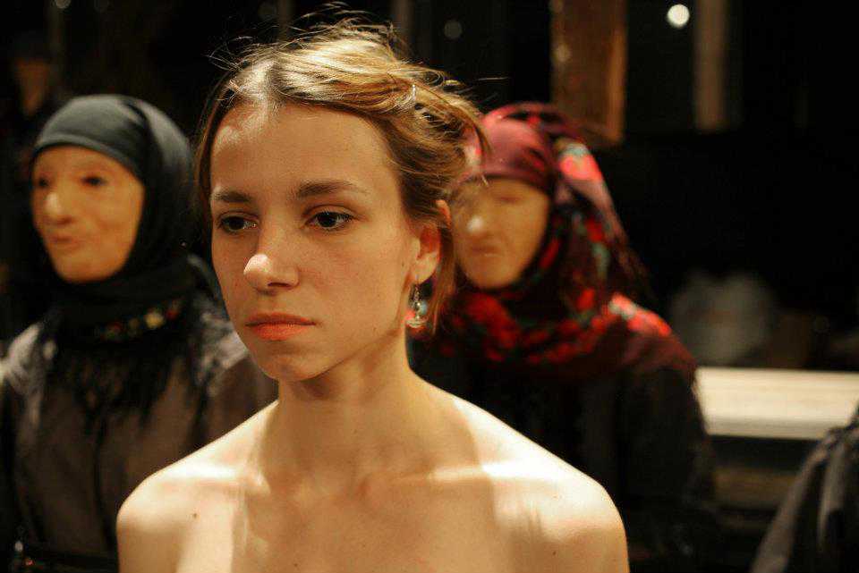 Юная Катерина (Панночка?), ее роль играет актриса по имени Zо, не хочет принимать ведьмин дар, делая попытку выйти замуж за бритоголового парубка из своего села (театральной труппы), но не может уйти от судьбы. Вначале вид у Катерины грустный и серьезный. Но потом, когда в ритуальных целях ее раздевают догола, обмазывают черной глиной и запускают бегать по сцене, становится видно, что сама актриса Zо – та еще творческая хулиганка и не боится ни чертей, ни зарубежных гастролей, в которые театр ездит по многу раз в год.