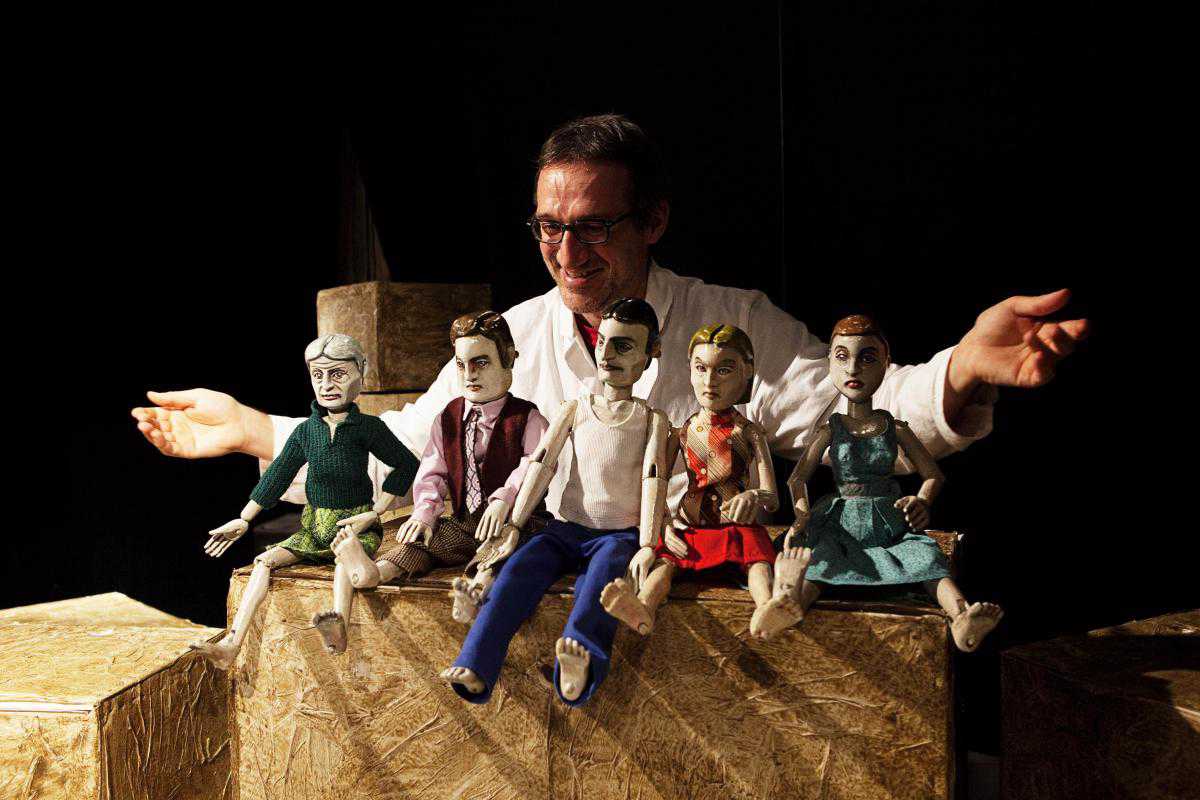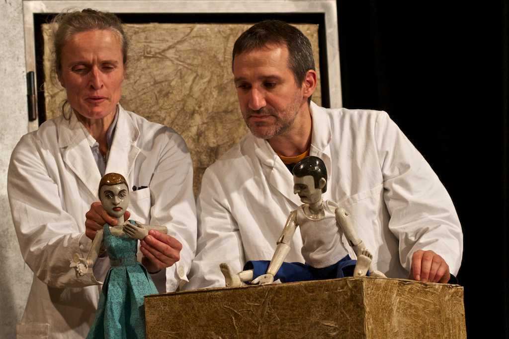 … Валери Потье не в первый раз обращается к социальной тематике. В центре ее пьесы «Вдали от бала», также ставившейся на женевских сценах, была группа стариков, вынужденных мутировать, чтобы приспособиться к навязанным им условиям жизни. «Это сатира на мир труда и неоднозначные отношения, которые он поддерживает в наши дни с людьми и телами, - говорит она о новой своей работе. – Марионетка позволяет в более радикальной, одновременно драматичной и ироничной манере исследовать это отношение к телу, чем живые актеры, присутствующие на сцене в ролях работников компании, которая заново вбрасывает в производственную систему  части людей, представляемые куклами. В идеале, тон должен быть трагикомическим, в стиле, который очень меня привлекает хрупкостью равновесия между разными тональностями, ироническими и драматическими. Перед нами фарс, подвешенный на веревочку. Но сюжет его крайне серьезен».