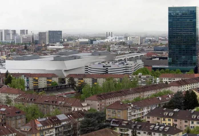 Базель, вид на кампус Novartis и высотное здание Roche (© Keystone)