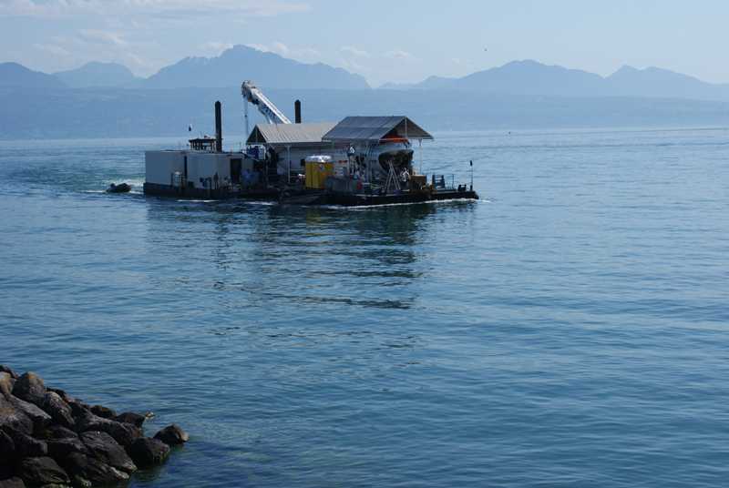 Я бы сказал, центральная его часть, где глубина максимальная, она составляет 307 метров. Нам исключительно благоприятствовала погода: лишь один день работы был потерян из-за неблагоприятных погодных условий. Увы, на глубине вода в озере оказалась мутной и малопрозрачной. По словам швейцарских подводных ныряльщиков, это нетипично и тоже связано с какими-то сезонными или погодными колебаниями – они утверждают, что изнутри Женевское озеро прозрачное, и нам просто не очень повезло».