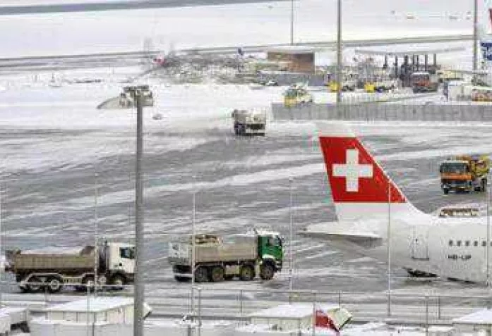 В Цюрихе снега выпало меньше: аэропорт Клотен работал в обычном режиме.
