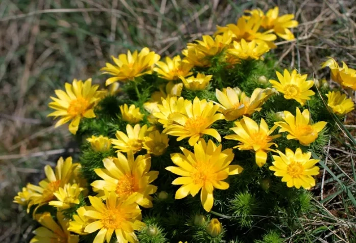 Произошло это после схода ледников. Как предполагают специалисты, адонис распространился во всей долине Роны, однако теперь его можно увидеть только на левом берегу реки (или, как любят говорить в Вале – на «левом склоне»). «Нескольких солнечных дней достаточно, чтобы сквозь сухую траву пробились зеленоватые бутоны, из которых вскоре появляются ярко-желтые лепестки», - отмечается на сайте деревни Шарра. Еще немного – и весь склон вспыхивает тысячами маленьких солнц. Долина Роны – единственный регион Швейцарии, отвечающий требованиям взыскательного растения: сухие неплодородные луга, известковый субстрат, теплое лето, холодная зима, небольшое количество осадков.